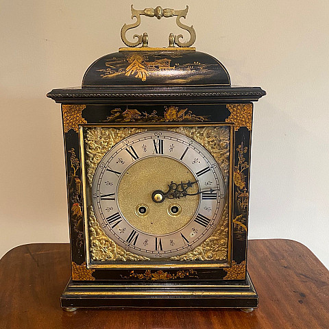 17th Century Style Chinoiserie Eight Day Bracket Clock English c. 1900 With French Movement