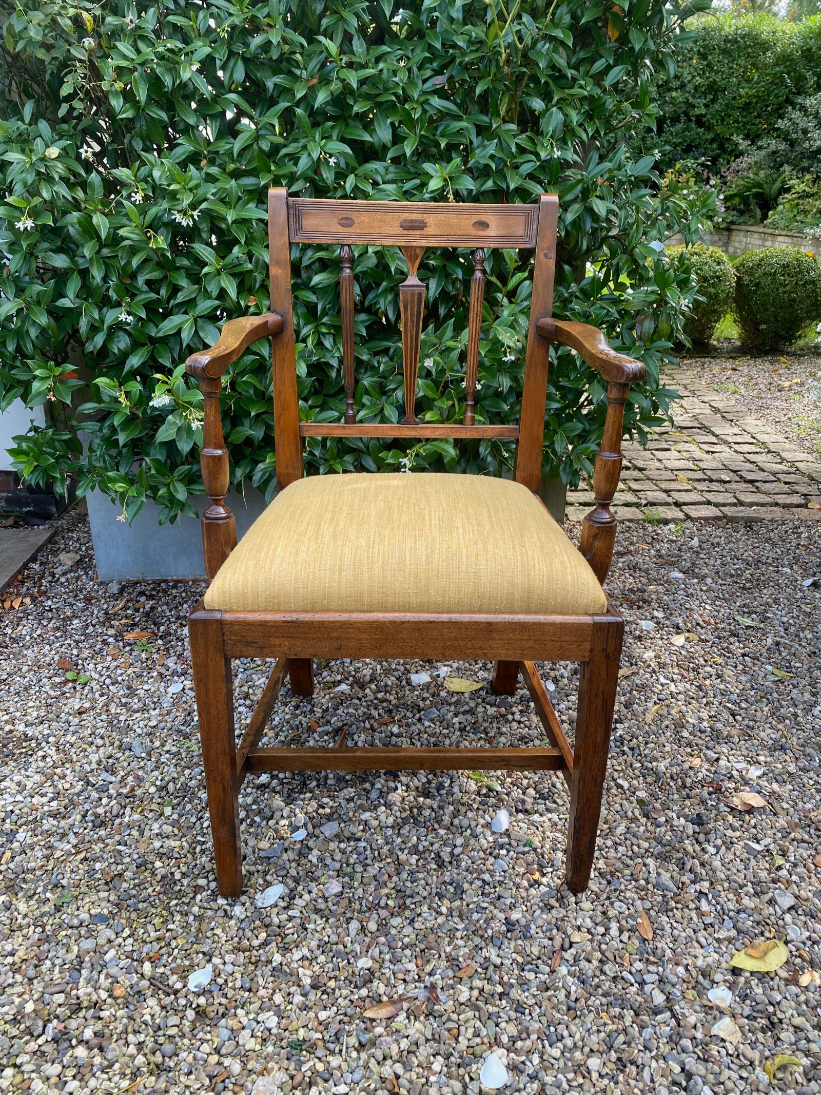 Georgian Walnut & Rosewood Inlaid Sheraton Style Country Carver Armchair