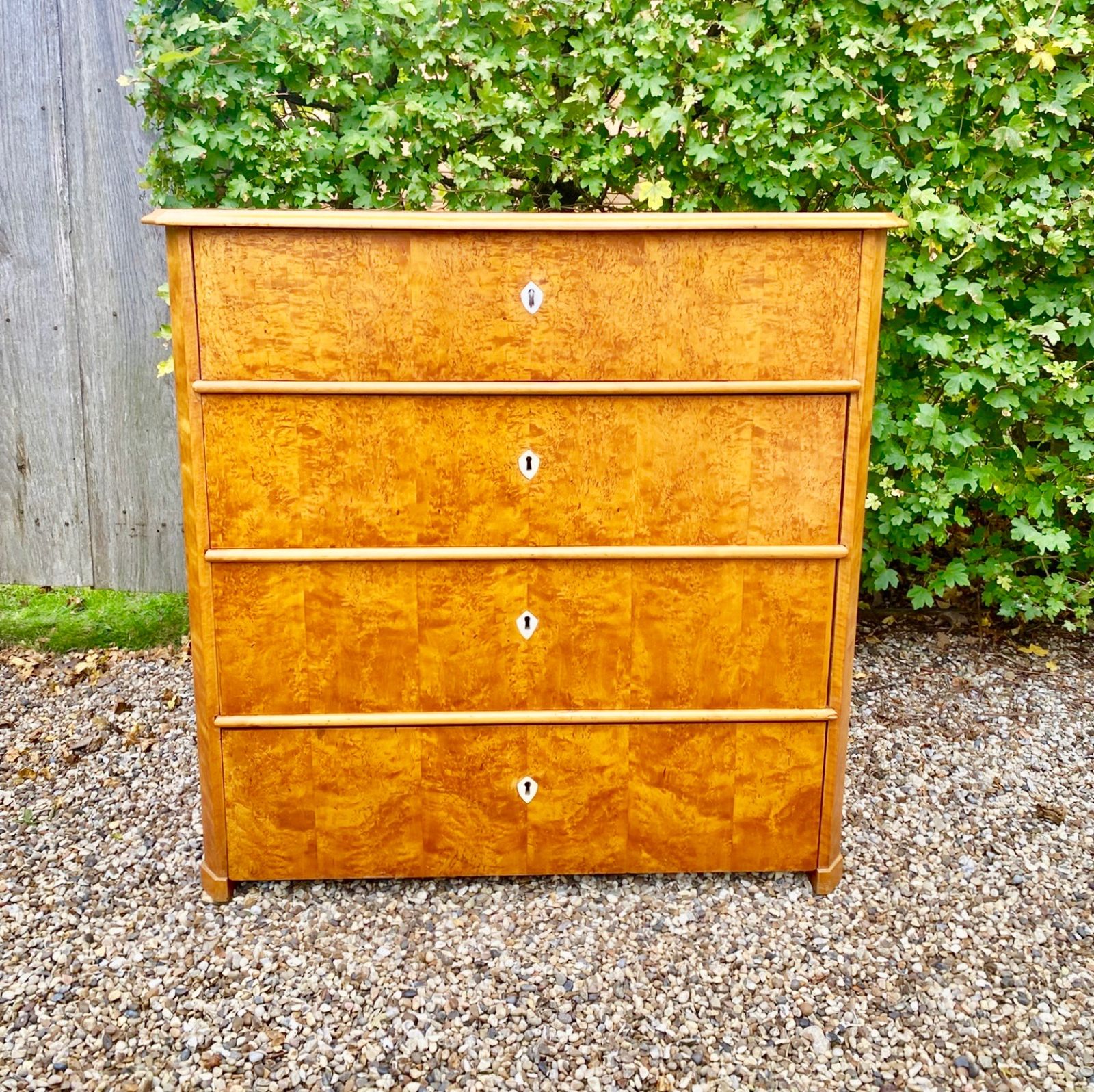 Mid 19th Century Swedish Birch Chest Of Four Straight Drawers