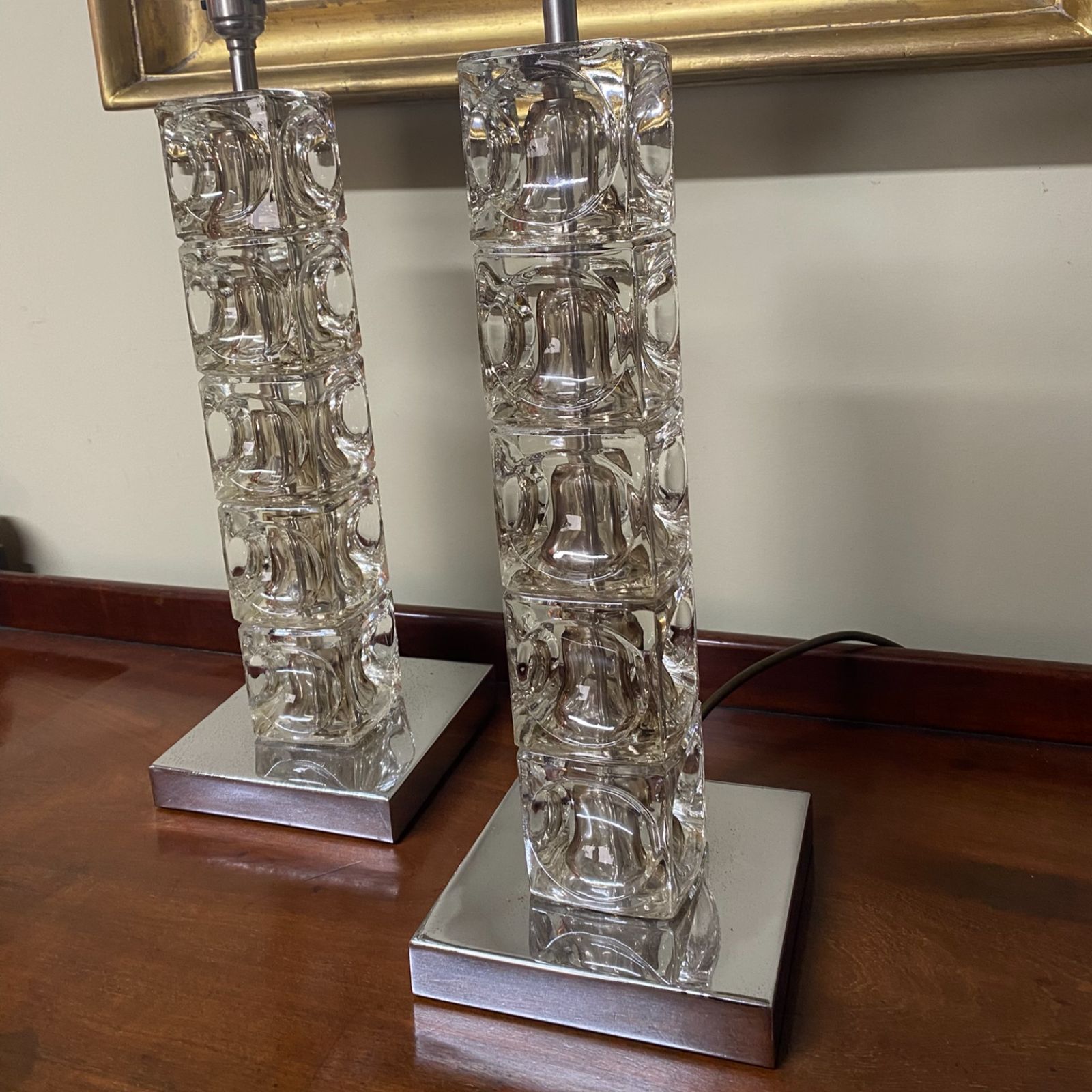 Pair Of Good Quality 20th Century Glass Cube Table Lamps