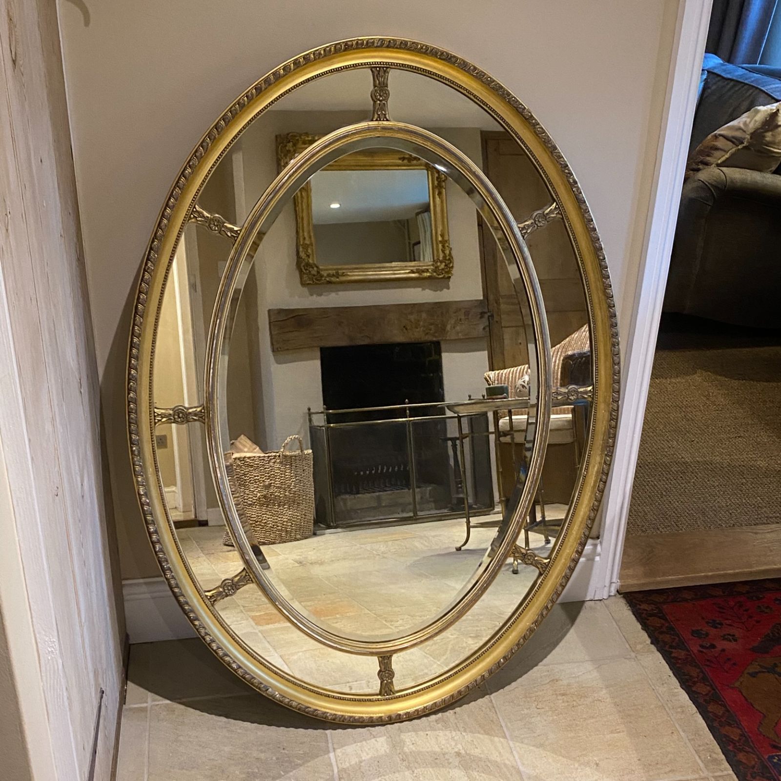 Large Regency Style Oval Gilt Wall Mirror, Segmented Design, c. 1880